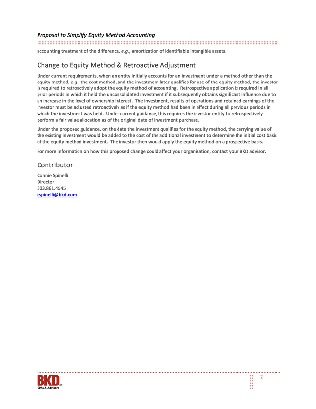 modified prospective basis. An investor would apply the proposal to all equity method investments existing on or